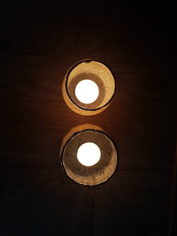 Set 2 theelichten met beige vlekken (handgeschilderd)