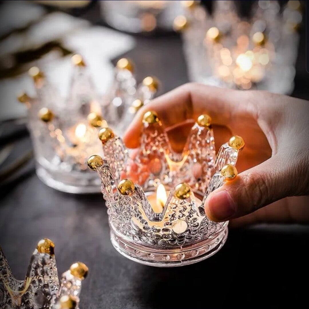 Glazen kroon waxinelicht houder (set van 2)